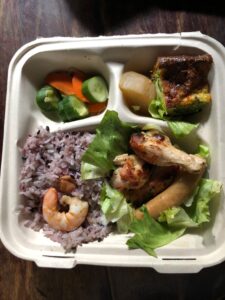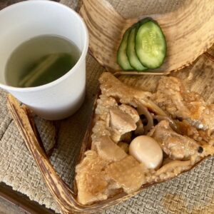 美味しいものは、行動食とおやつは丹沢講房さんときょうのおやつとコーヒーさん、お昼はJudy’s Dinnerさん、夕食はたなーたんさんでどれも美味しくお腹いっぱいでした。今回のイベントはお泊まりコースもあり朝食もオプションがありました。朝食は山笑うさんのチマキが食べられました。道普請の作業以上に摂取カロリーがあり充実のイベントとなりました。