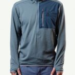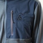 大きなハーフジップと、グリッド状の起毛面で熱排出に優れる構造。アクティブなシーンで使い易いフリースです。