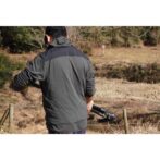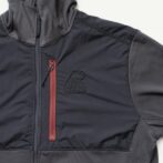 フロントジッパーは上下から開く2wayOpenの仕様で、ハンドポケットはコンシールジッパー。共にリサイクルではありません。